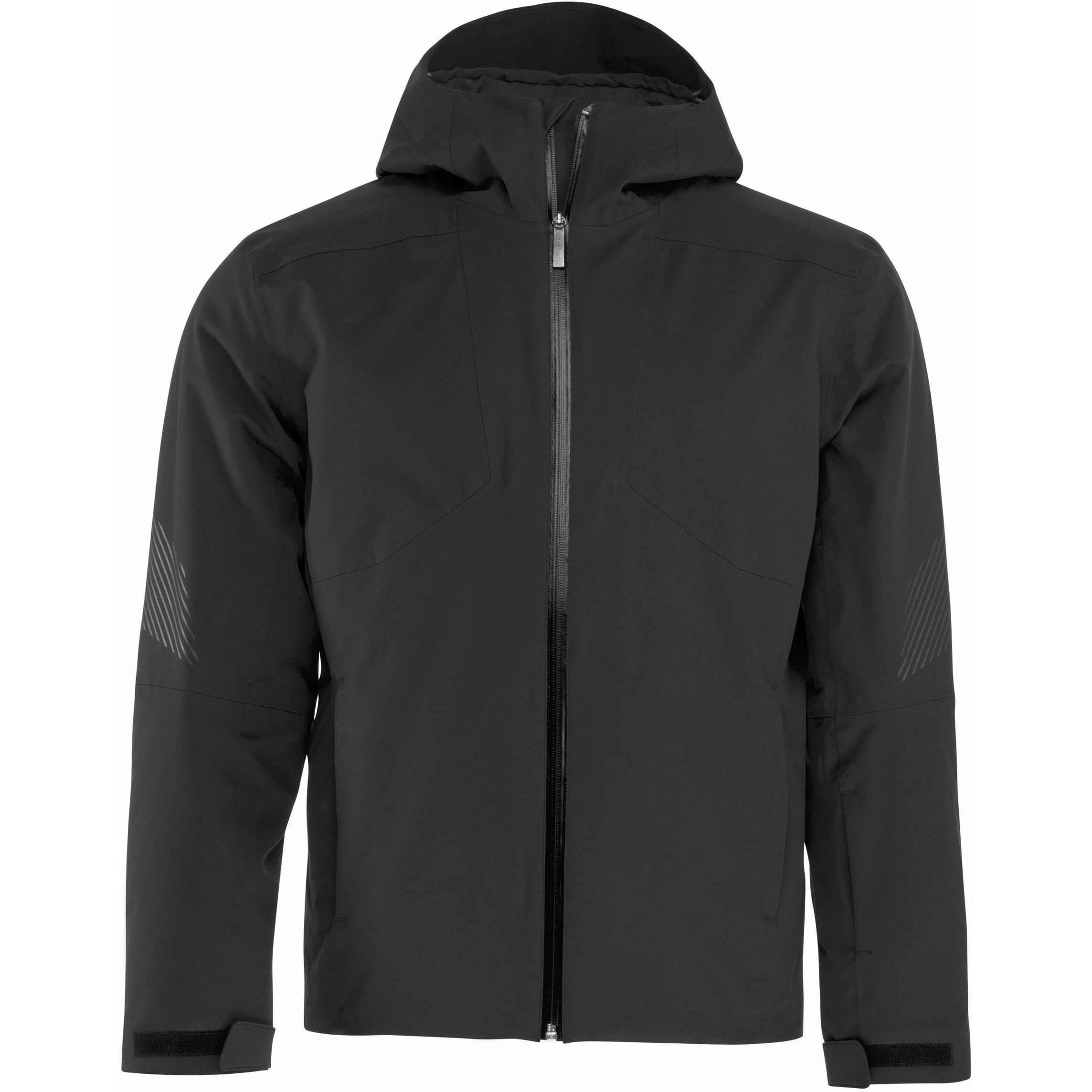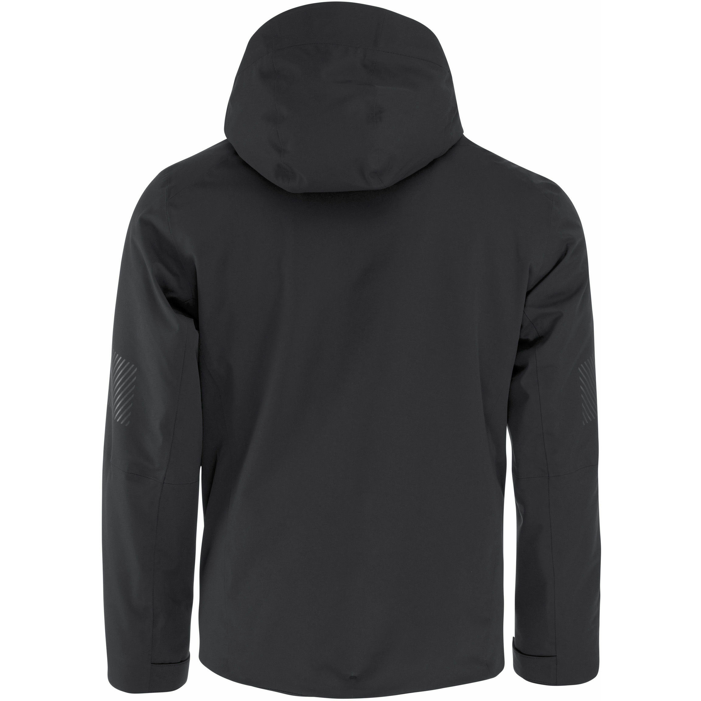 Gluga reglabila fixa si protectie de zapada Fermoar YKK AquaGuard centru fata 2 buzunare pentru abonamente schi cu fermoare YKK Manseta moale si elastica 2 buzunare din plasa inauntru Izolatie PrimaLoft Cusaturi complet lipite Imprimeu pe maneci