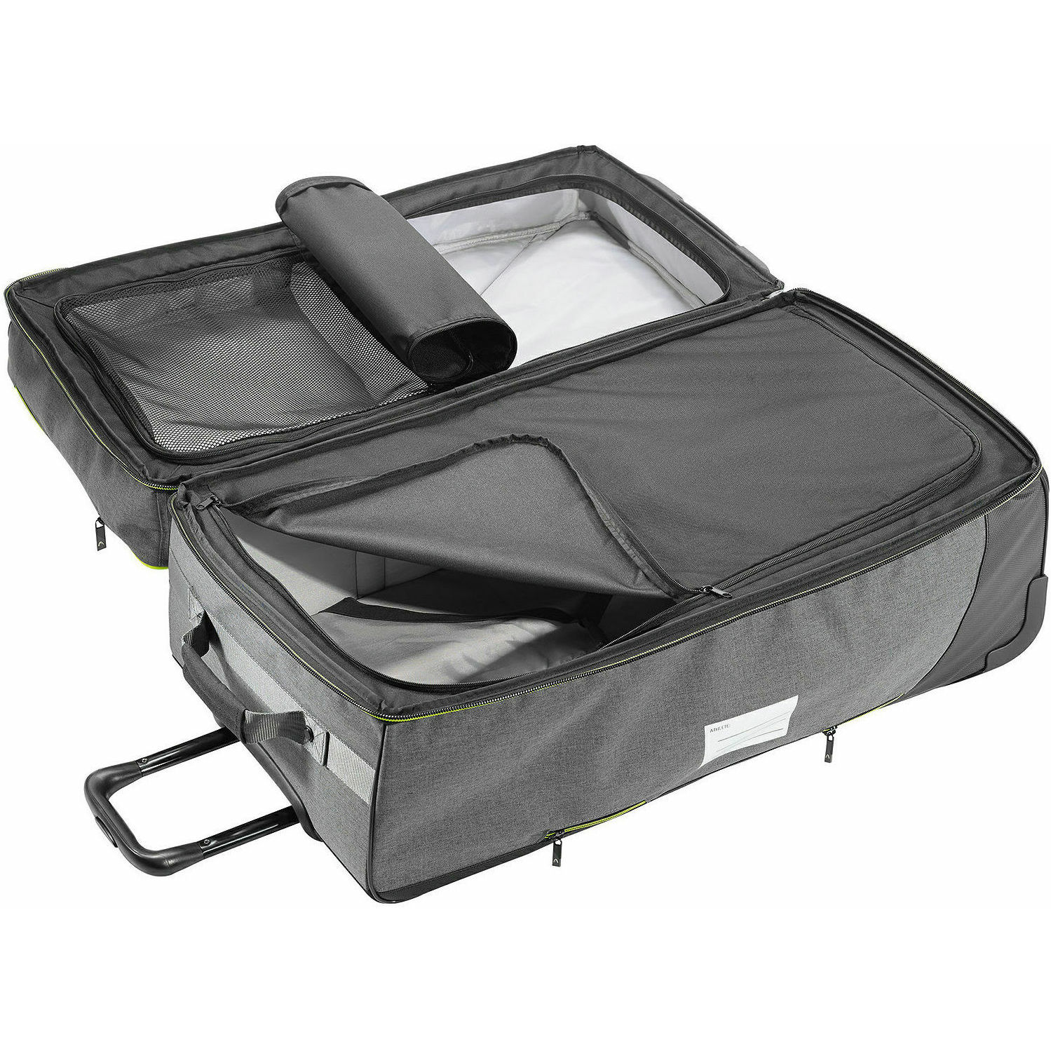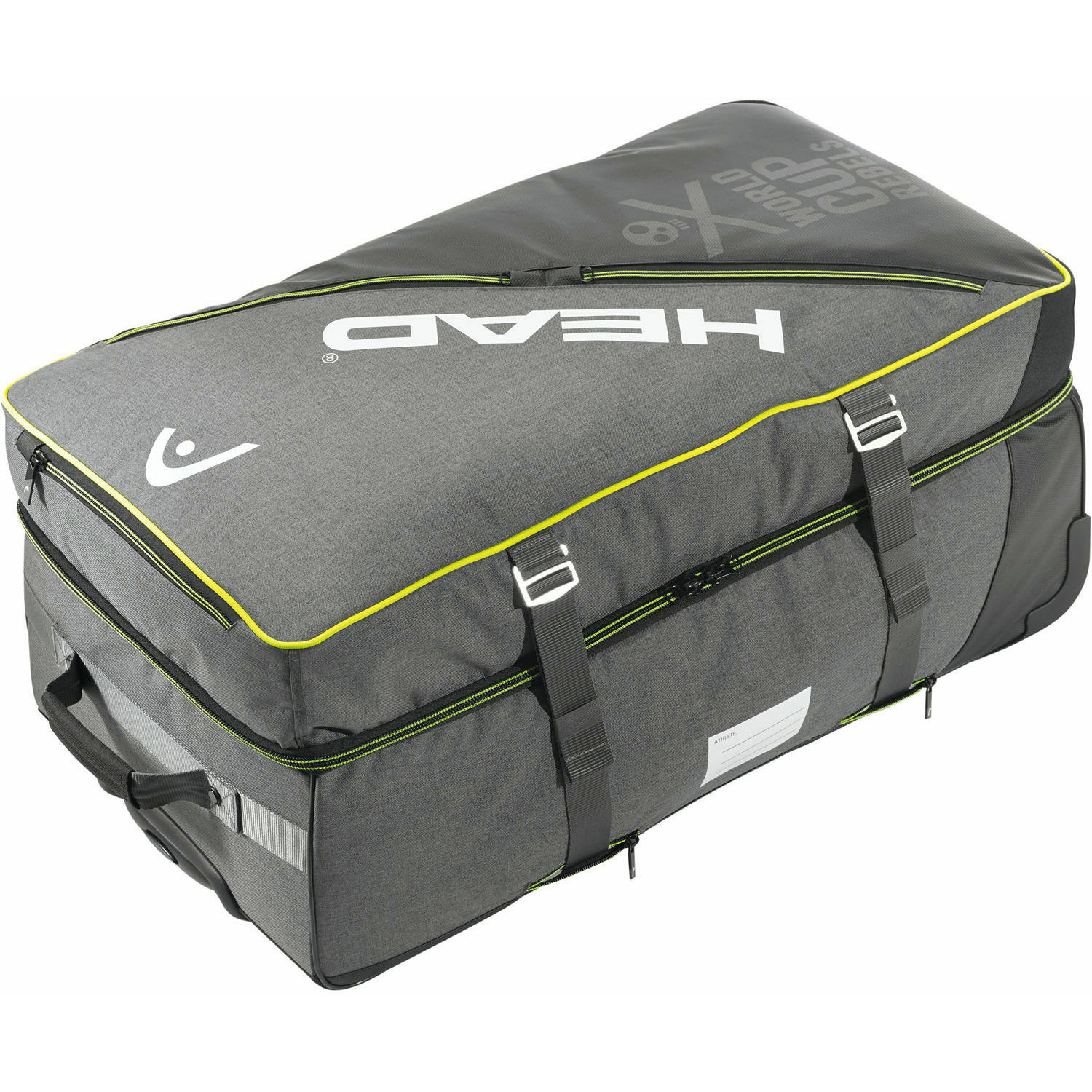Geanta mare cu roti pentru schiori profesionisti si calatori. Poate fi divizat in doua parti. Are fermoar in plus pentru compartimentul superior, roti ascunse, tesatura de baza speciala, captuseala Neon.